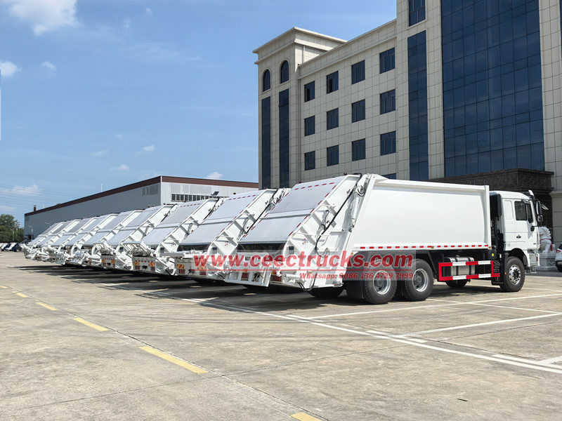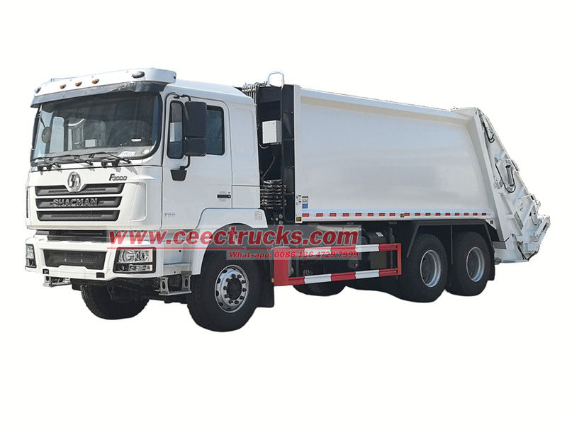 Autocarro compattatore Shacman da 25 mc con caricamento posteriore (chiamato anche camion della spazzatura con caricatore posteriore Shacman 6x4, camion compattatore di rifiuti Shacman F3000, camion compattatore di rifiuti Shacman, camion compattatore di rifiuti Shacman 6x4 380hp, camion per la raccolta dei rifiuti con caricatore posteriore Shacman) è un nuovo tipo di veicolo per la nettezza urbana, utilizzato appositamente per la raccolta, il trasporto e la rimozione dei rifiuti.