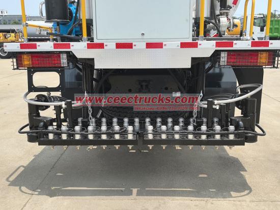 La parte posteriore dell'autocisterna Shacman X3000 per la distribuzione del bitume è dotata di un'asta di spruzzatura retrattile con larghezza regolabile, dotata di diversi set di ugelli per il controllo del flusso ad alta precisione. È in grado di regolare con precisione il volume e la copertura di spruzzatura in base alle esigenze costruttive (come strato permeabile, strato adesivo e strato sigillante) e di ottenere un'ampia gamma di spruzzatura variabile da 0,2 a 3 l/m².