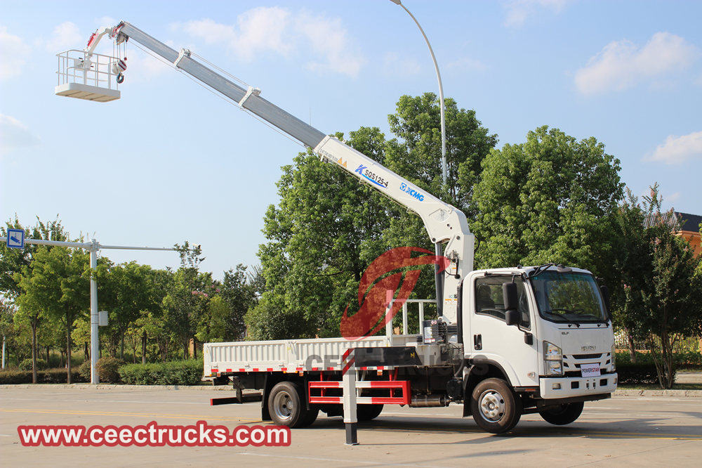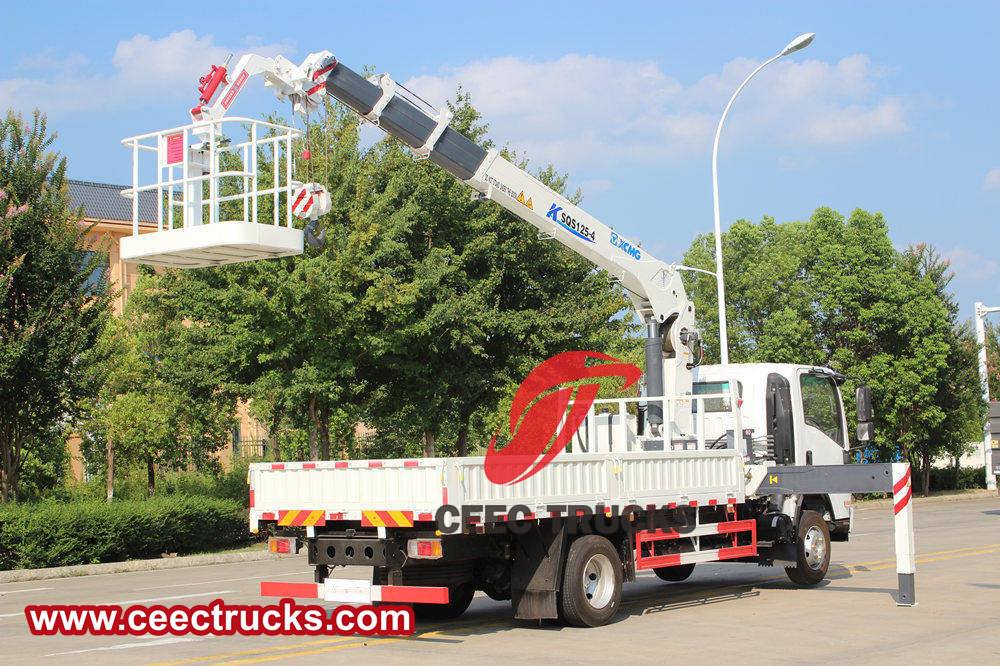 Oltre alle funzioni di sollevamento standard, CEEC ha anche installato un cestello da lavoro ad alta quota su questo autogru ISUZUsecondo le esigenze particolari del cliente. Questo design innovativo consente al veicolo non solo di eseguire sollevamenti pesanti ma anche di svolgere operazioni ad alta quota come la manutenzione delle attrezzature e la costruzione di pareti esterne, migliorando notevolmente l'efficienza del lavoro e la sicurezza operativa. Questo servizio personalizzato non solo riflette la profonda comprensione delle esigenze dei clienti da parte di CEEC, ma dimostra anche la sua forte competenza tecnica nel campo della modifica di veicoli speciali.