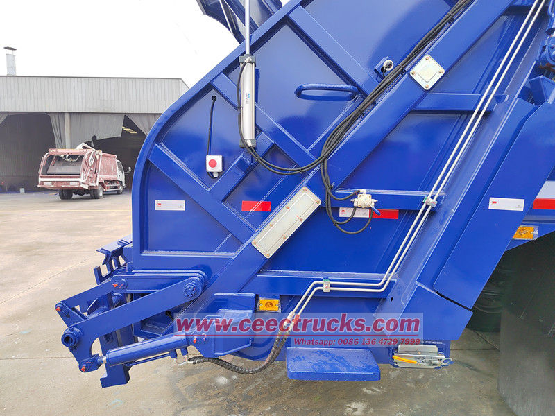 Il veicolo è dotato di un sistema di azionamento completamente idraulico, che consente agli operatori di completare l'intero processo di carico, compattazione e scarico dei rifiuti utilizzando un pannello di controllo o un telecomando wireless, riducendo l'intensità del lavoro. Inoltre, il veicolo è dotato di un sensore che monitora il livello di riempimento del contenitore in tempo reale, interrompendo automaticamente la compattazione ed emettendo un avviso per evitare il sovraccarico. Per motivi di sicurezza, il portellone posteriore è dotato di un meccanismo di bloccaggio idraulico per evitare perdite durante il trasporto. Un sistema di frenata di emergenza e un dispositivo antiribaltamento garantiscono ulteriormente la sicurezza di guida.